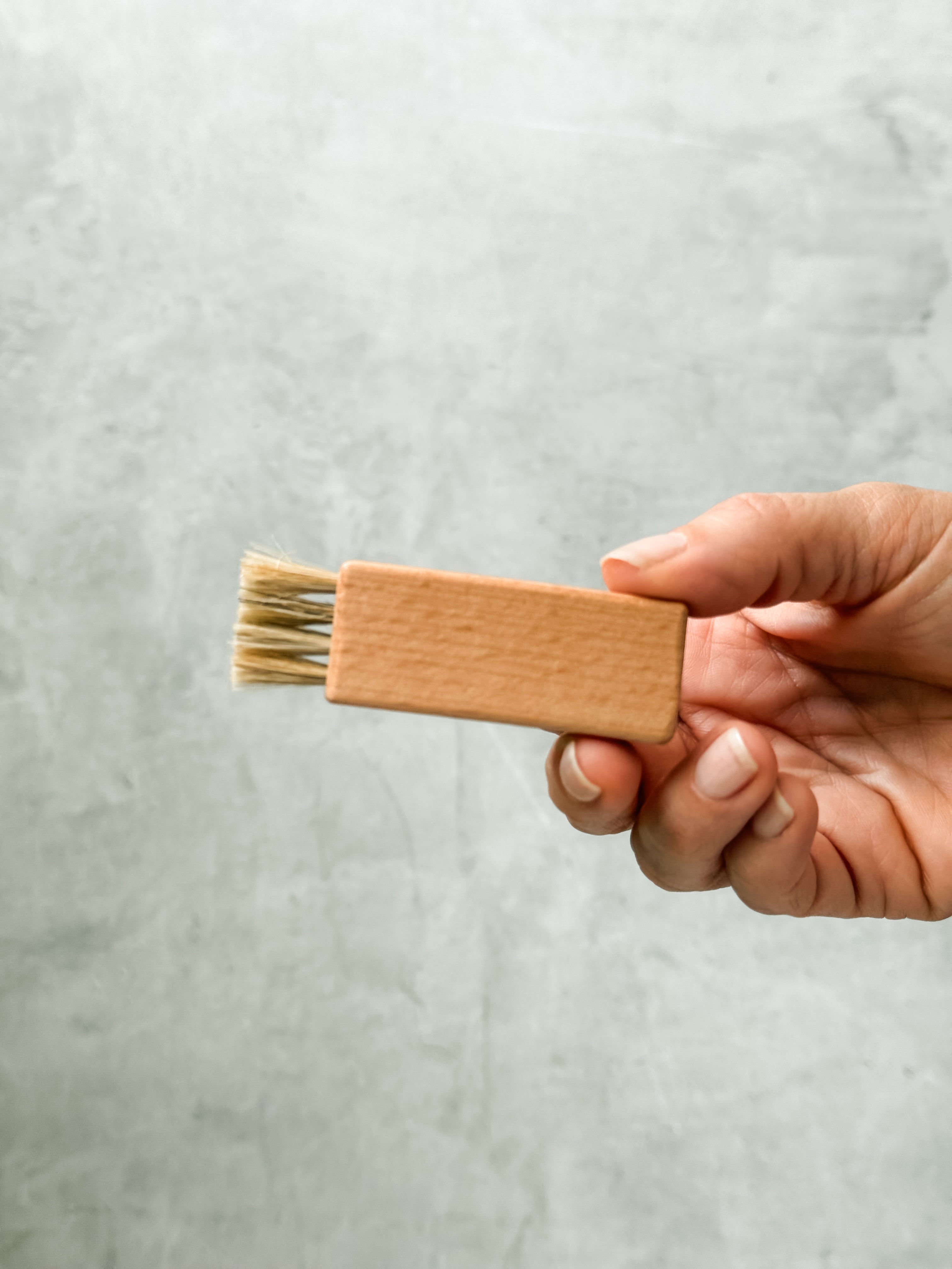 Cepillo rectangular con cerdas suaves, perfecto para llegar a cualquier espacio pequeño de tu hogar, sus medidas son 8 cm de largo x 2.5 cm de ancho.