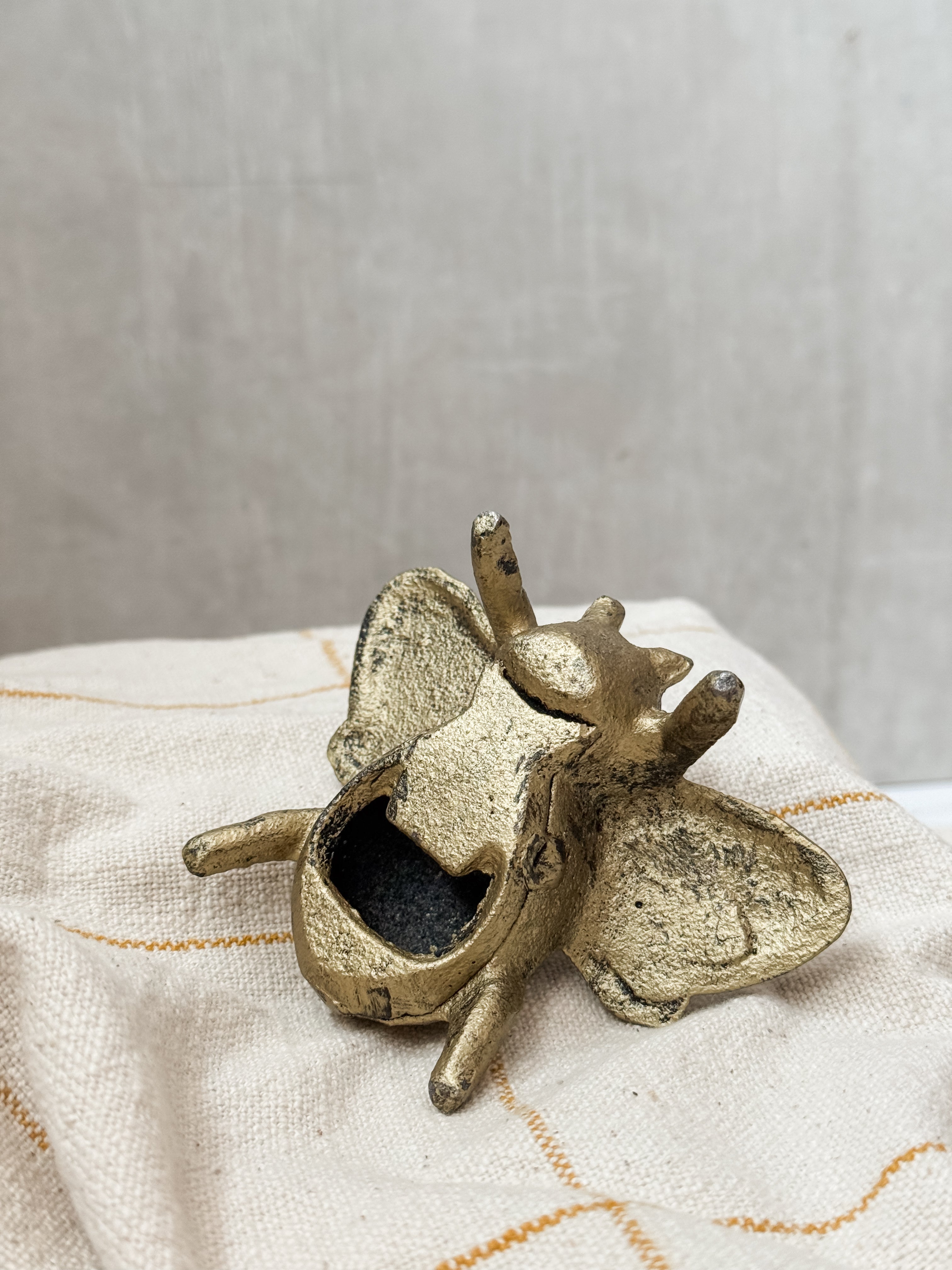 Destapador de fierro en forma de Abeja. Sus medidas son 8 cm de alto x 10 cm de ancho.