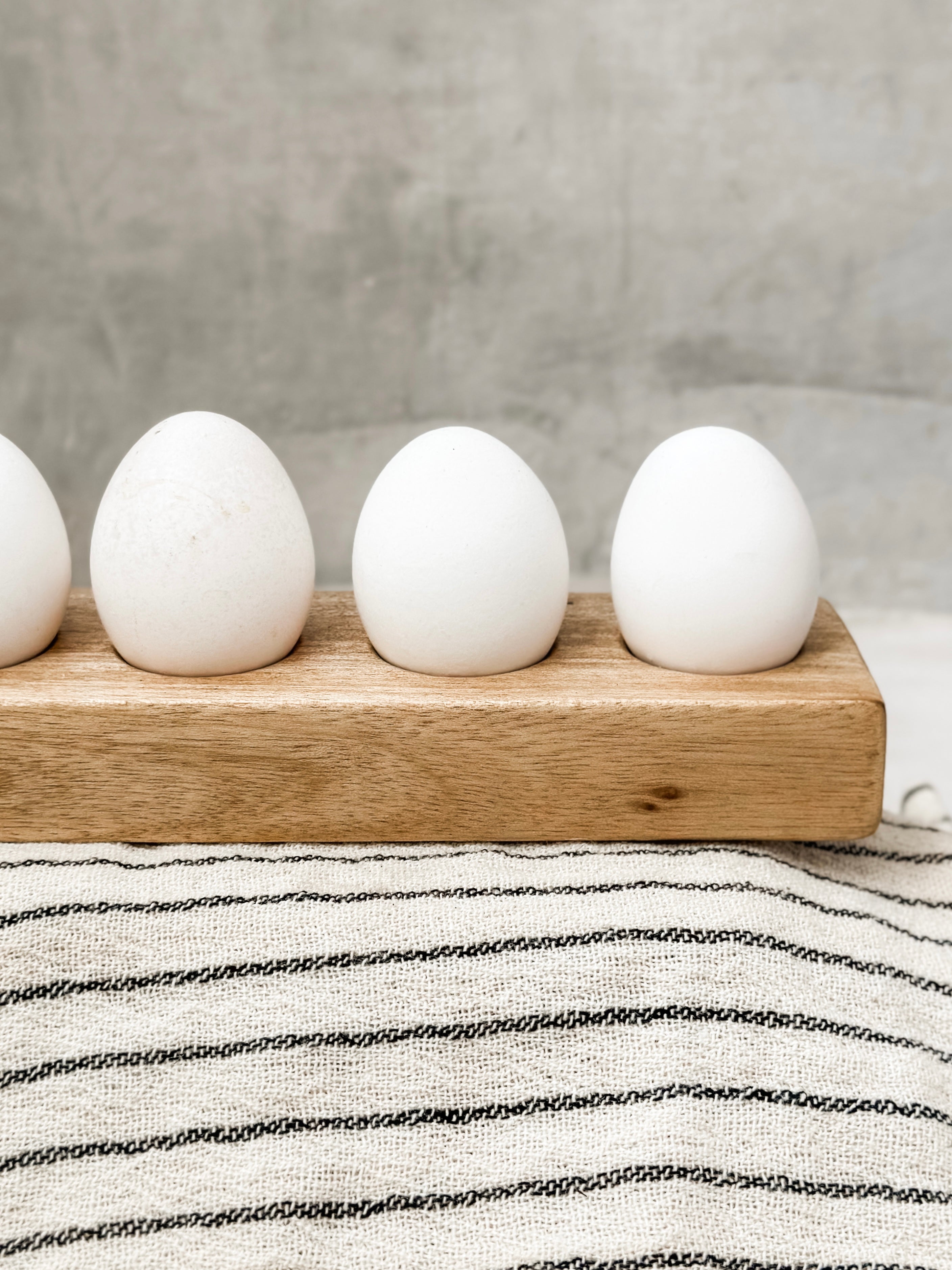 Portahuevos de Madera, perfecto para tu cocina, con capacidad para 8 pz. Sus medidas son 47 cm de largo x 7 cm de ancho.