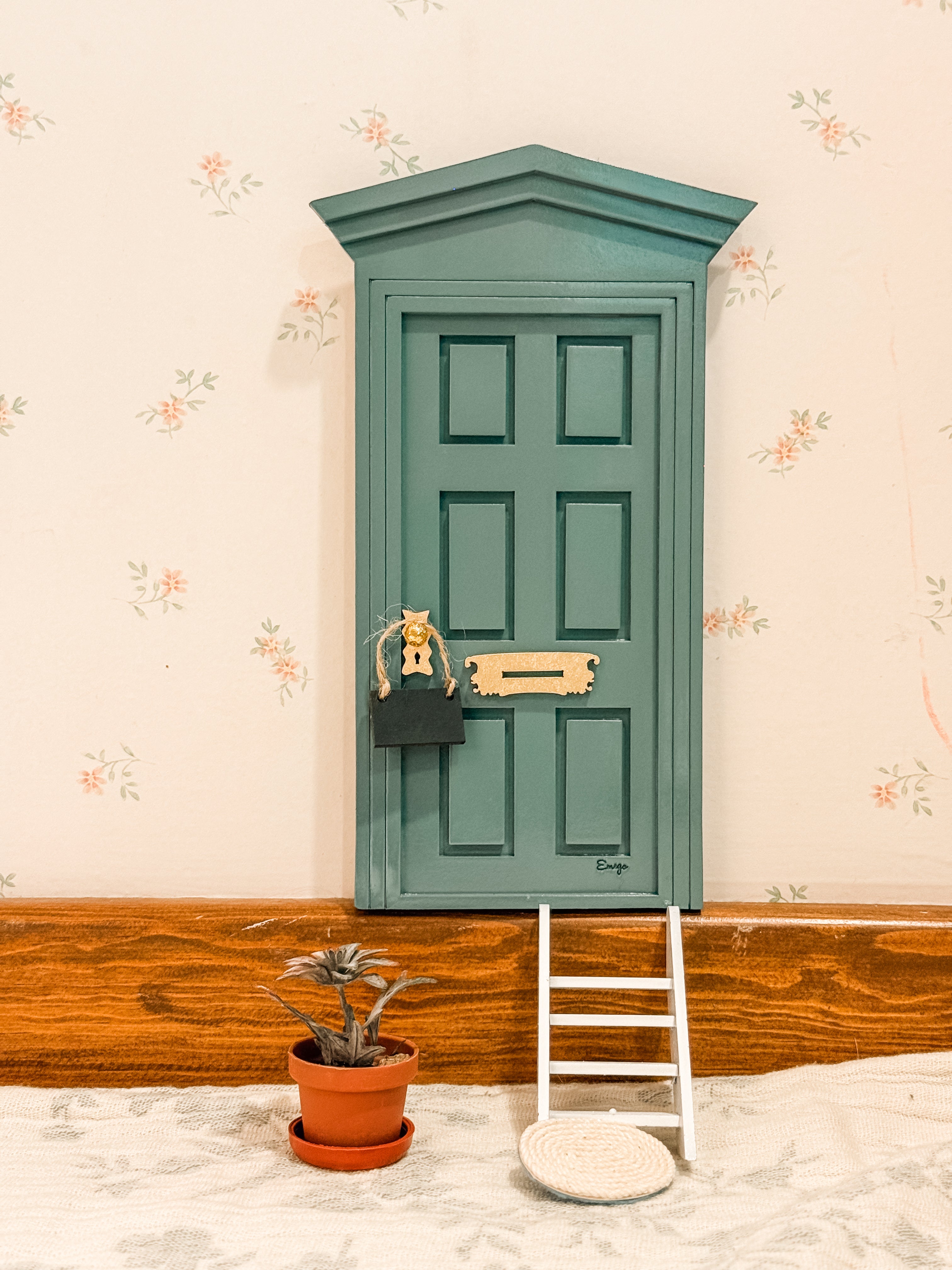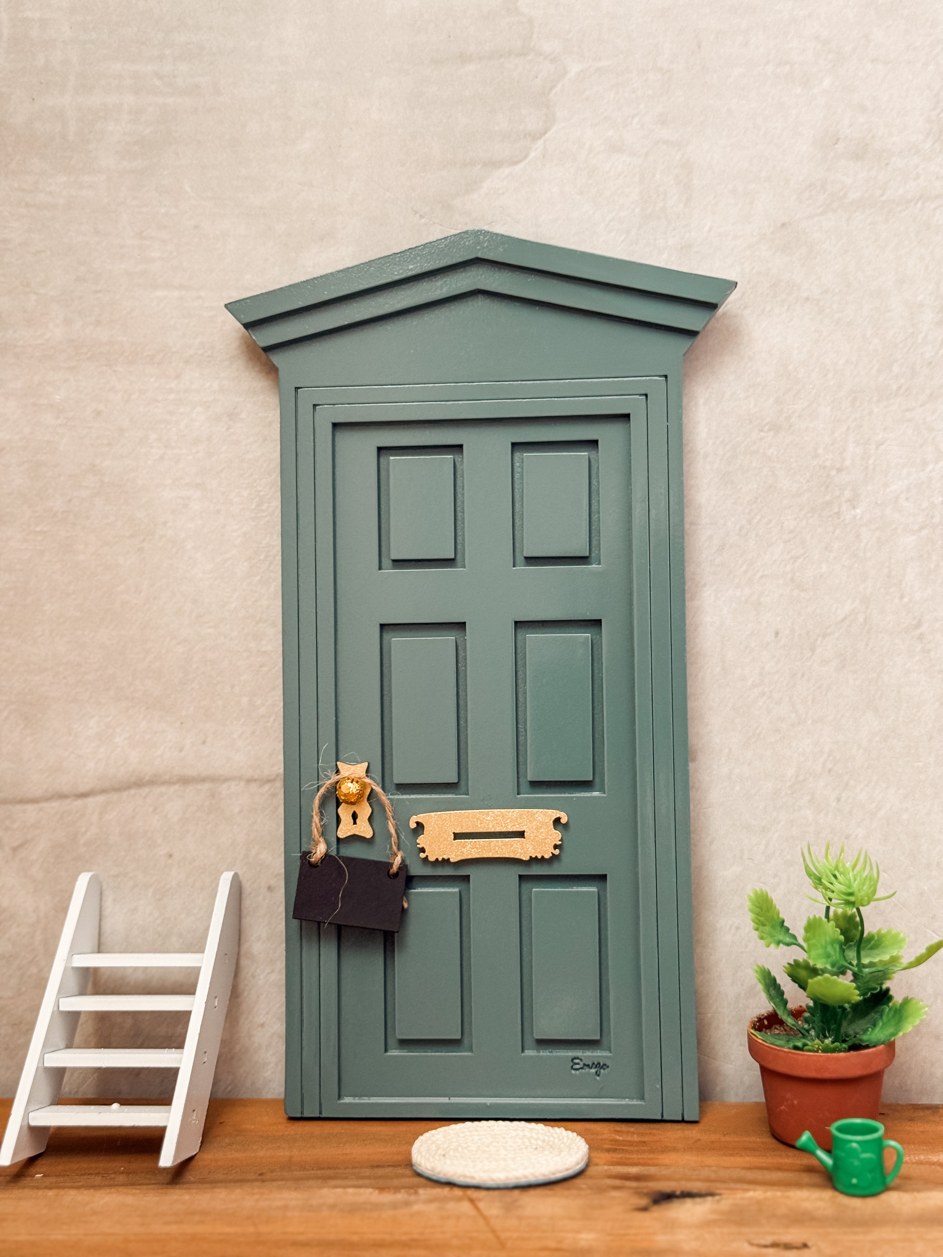 Encantadora puerta verde en miniatura, diseñada para que el ratoncito pueda usarla para entrar y recoger el diente a cambio de una sorpresa.