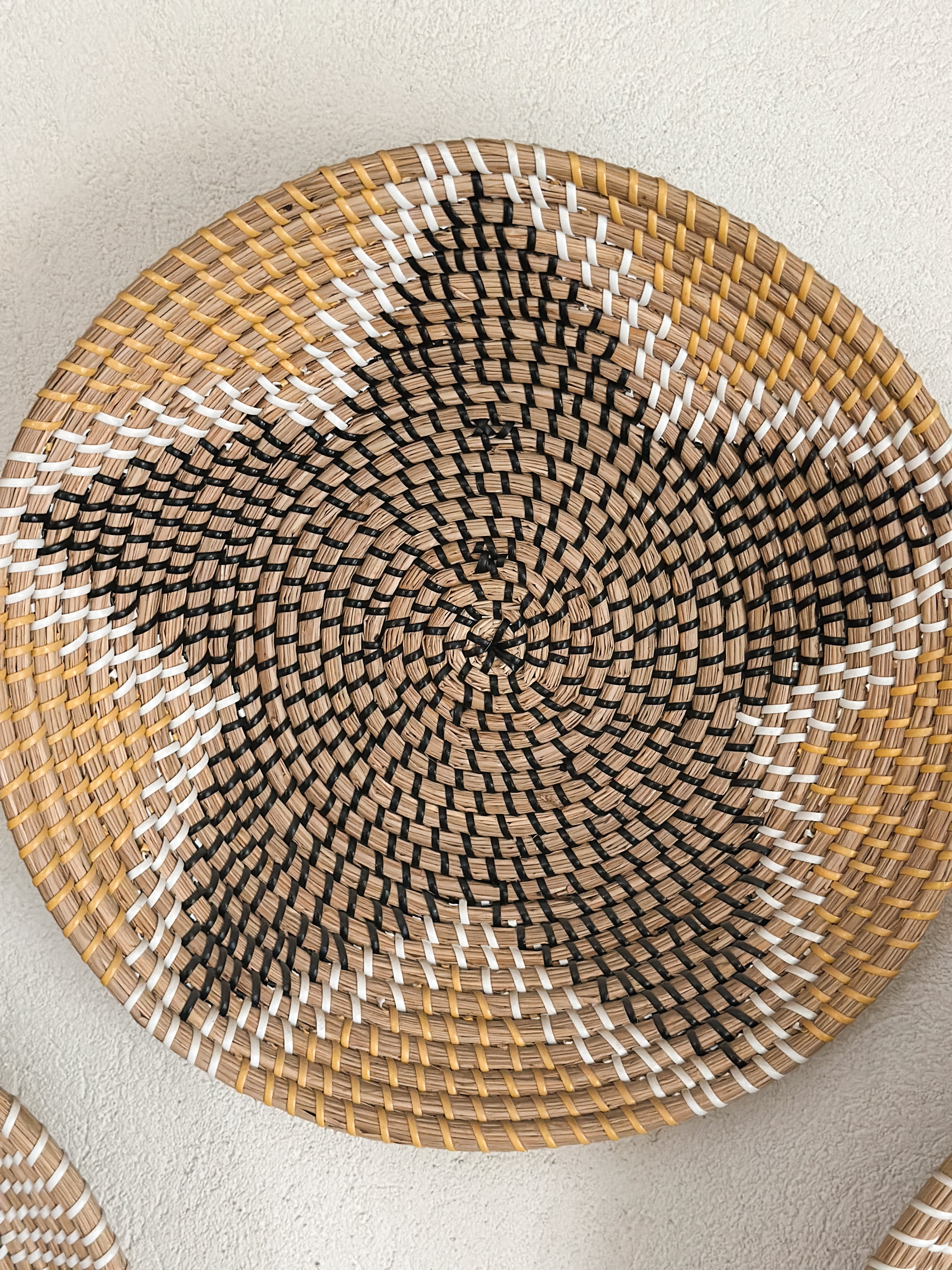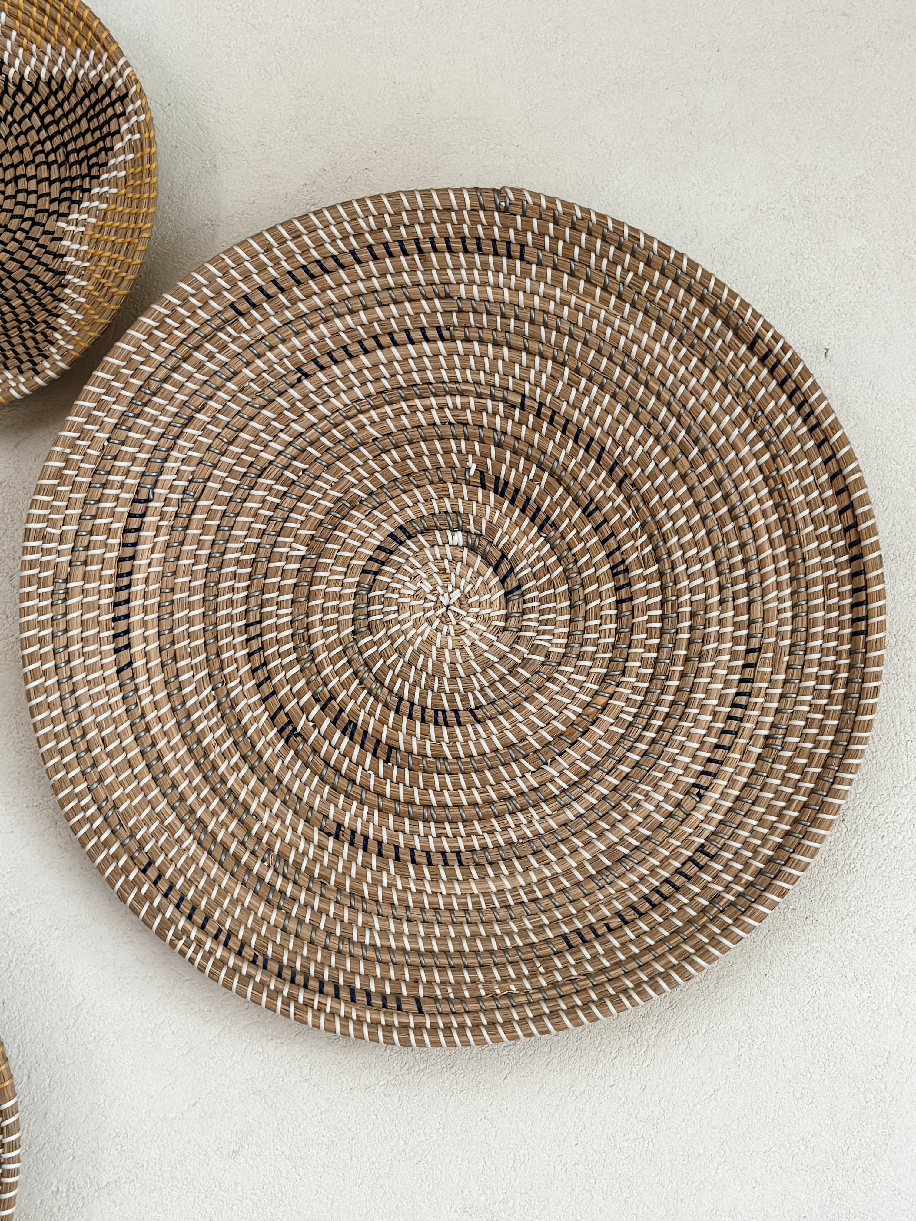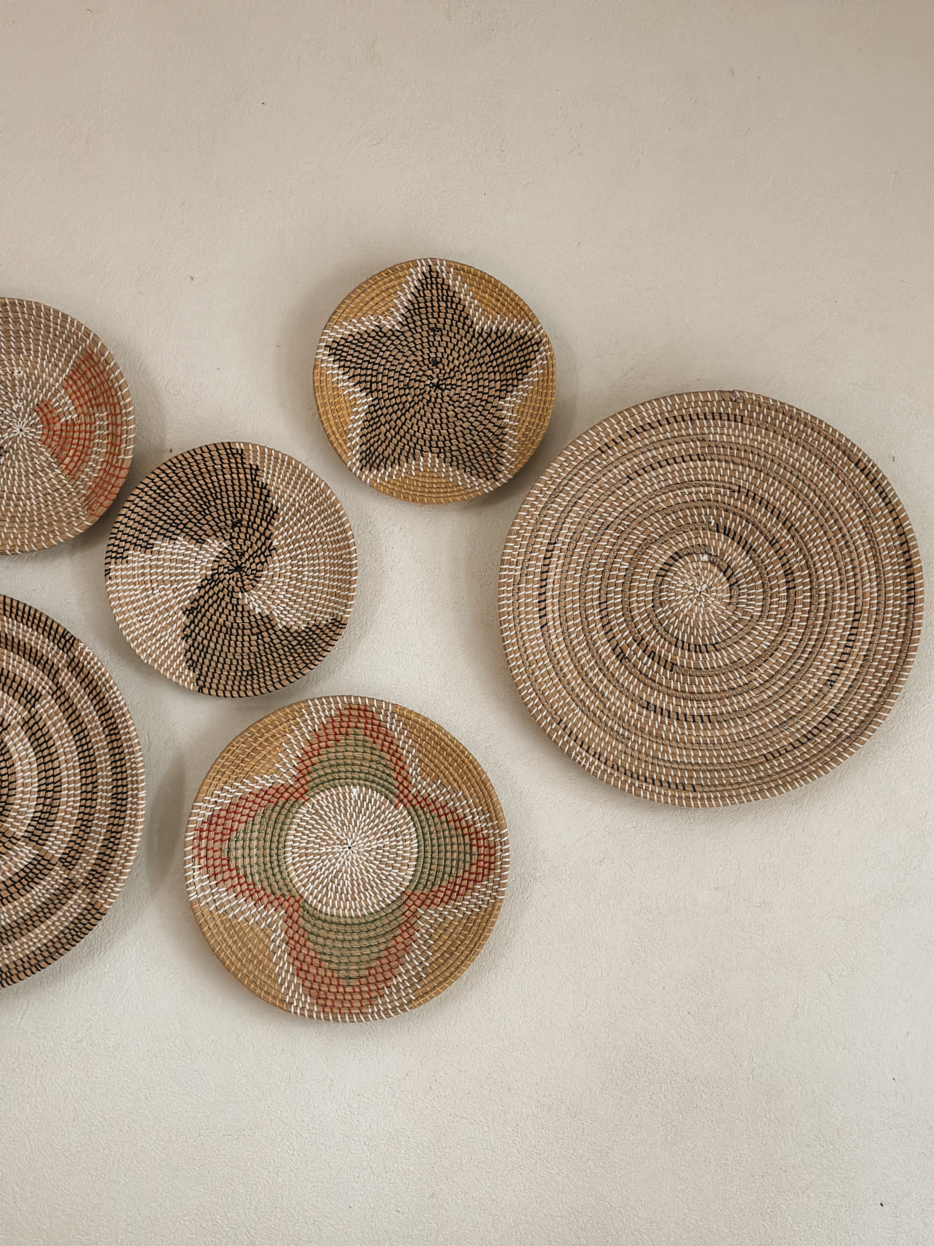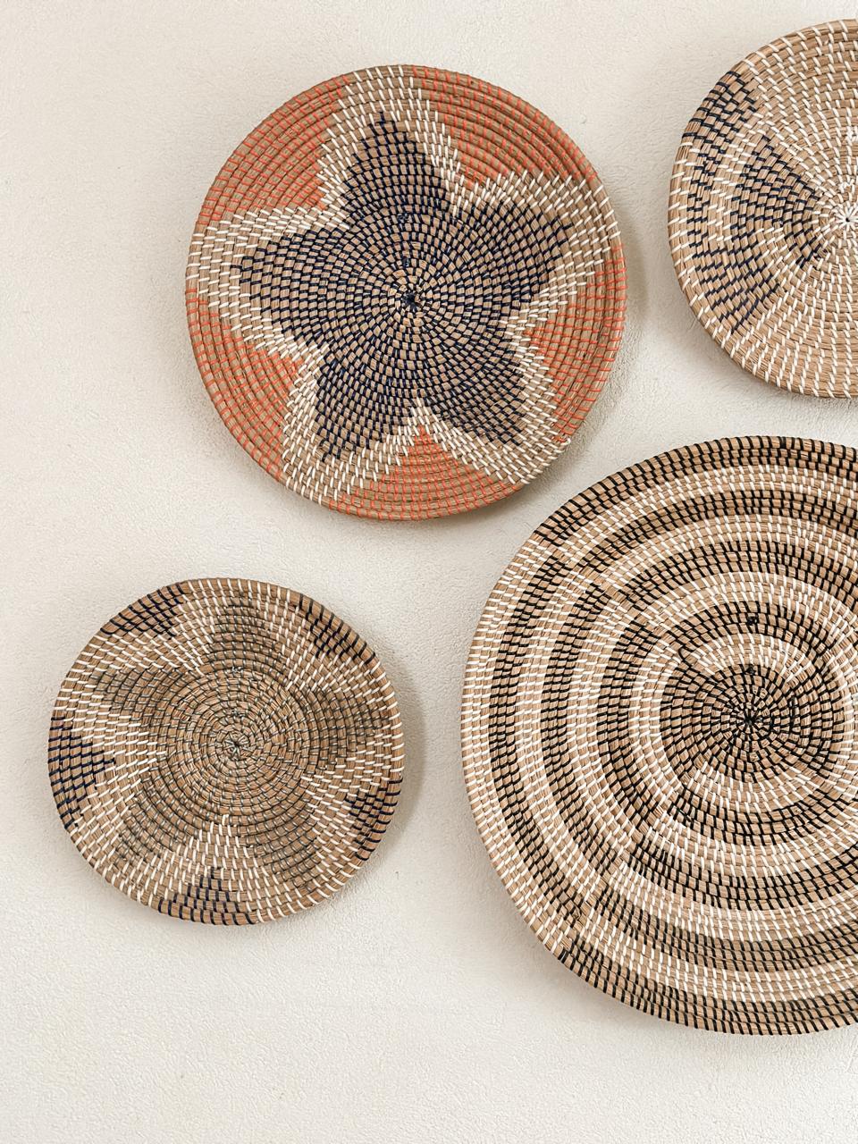 Set de 9 Adornos para pared hechos de fibra natural. Ideales para decorar cualquier pared.