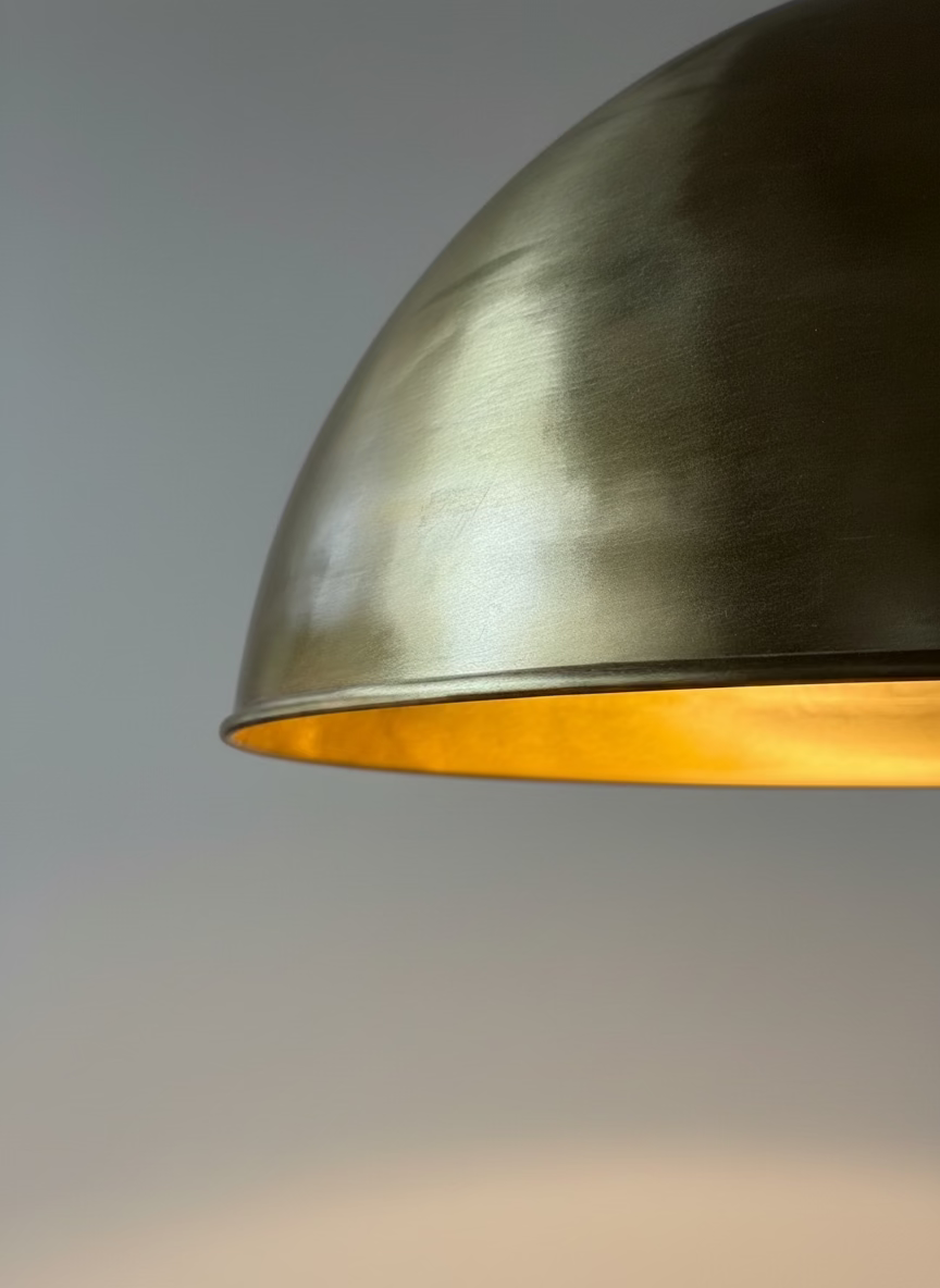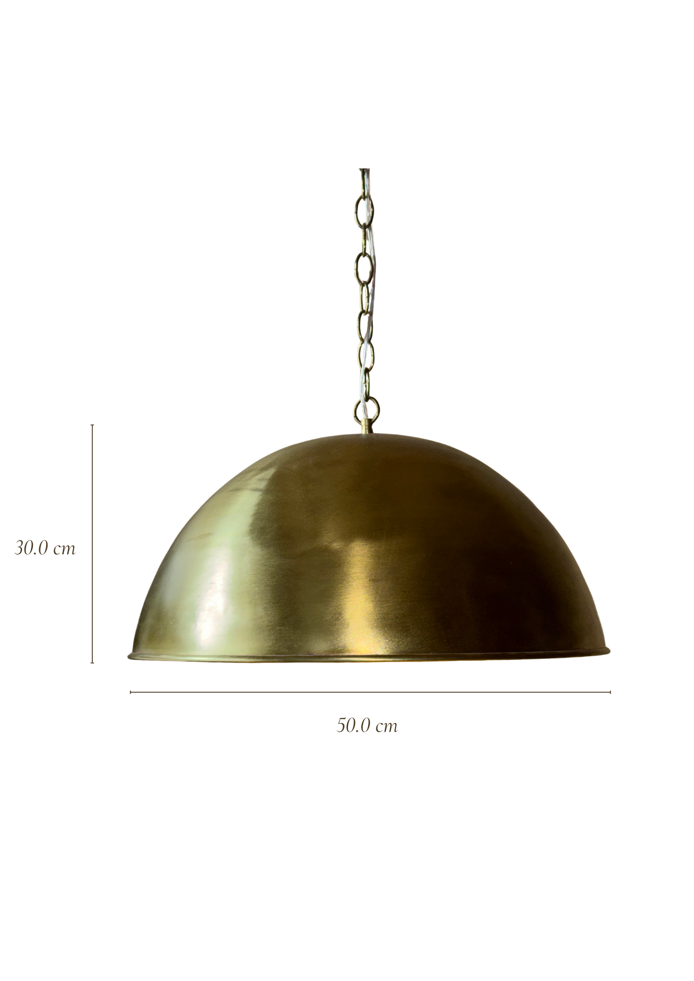 Lámpara colgante con estructura metálica en acabado latón para espacios de comedor y barras. Equipada con cadena metálica resistente y roseton de instalación, garantiza un montaje seguro y duradero. El cable eléctrico integrado facilita la conexión, mientras que su diseño versátil se adapta a diversos estilos de decoración interior, proporcionando iluminación funcional con carácter estético.
