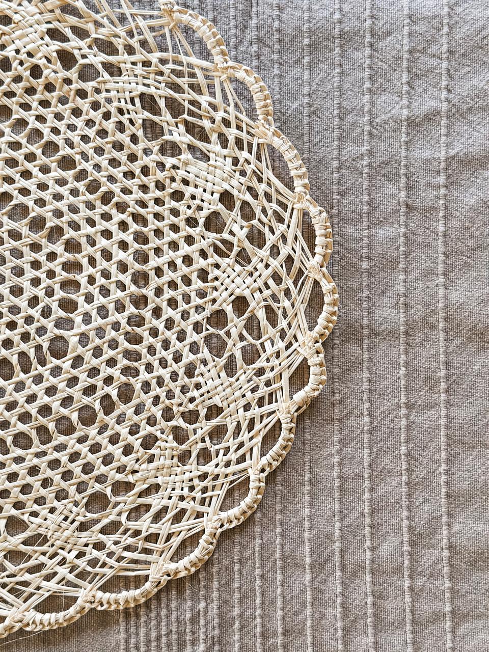 Individual redondo de fibra natural. Su medida aproximada es de 37 cm de diámetro.