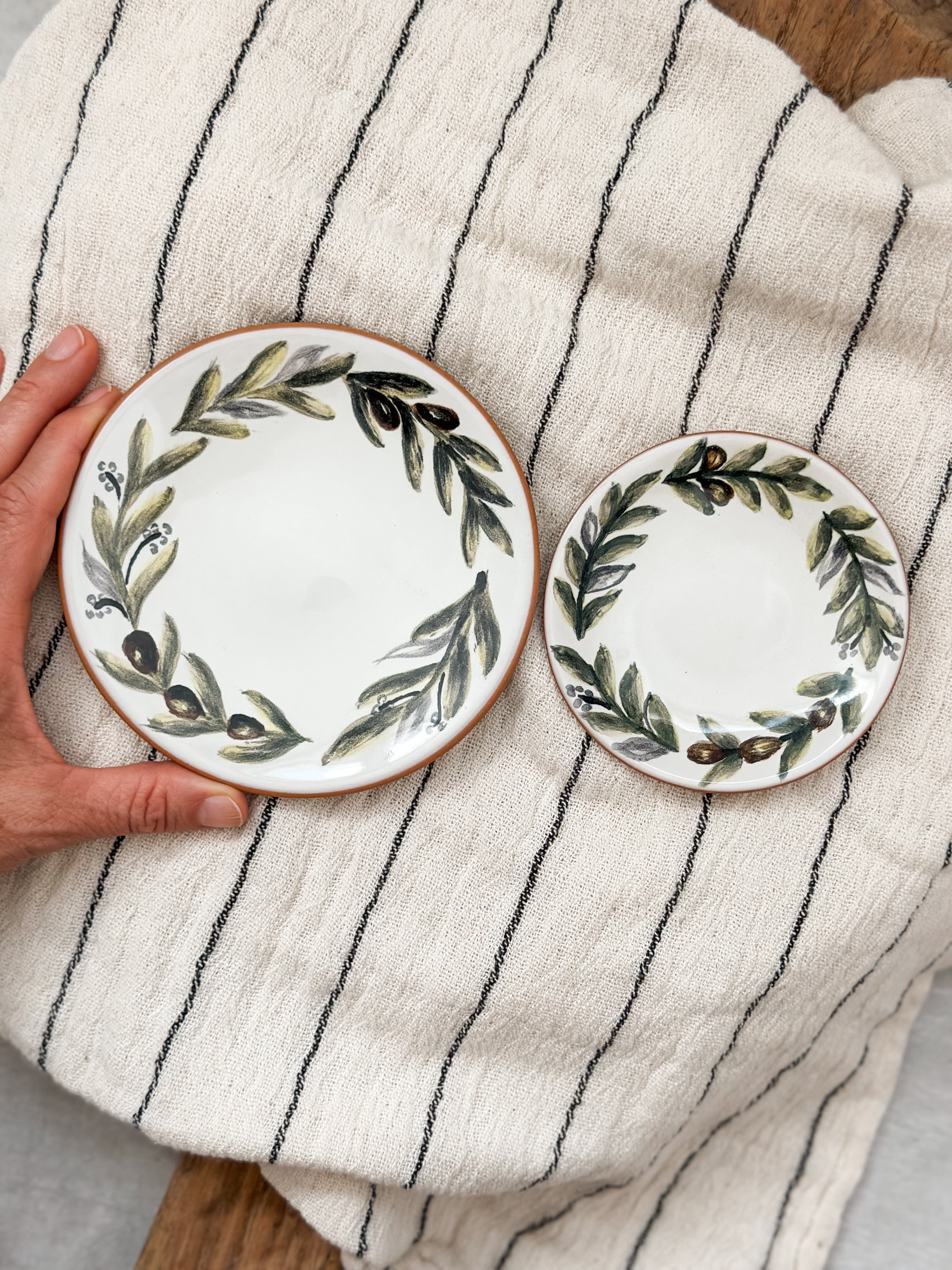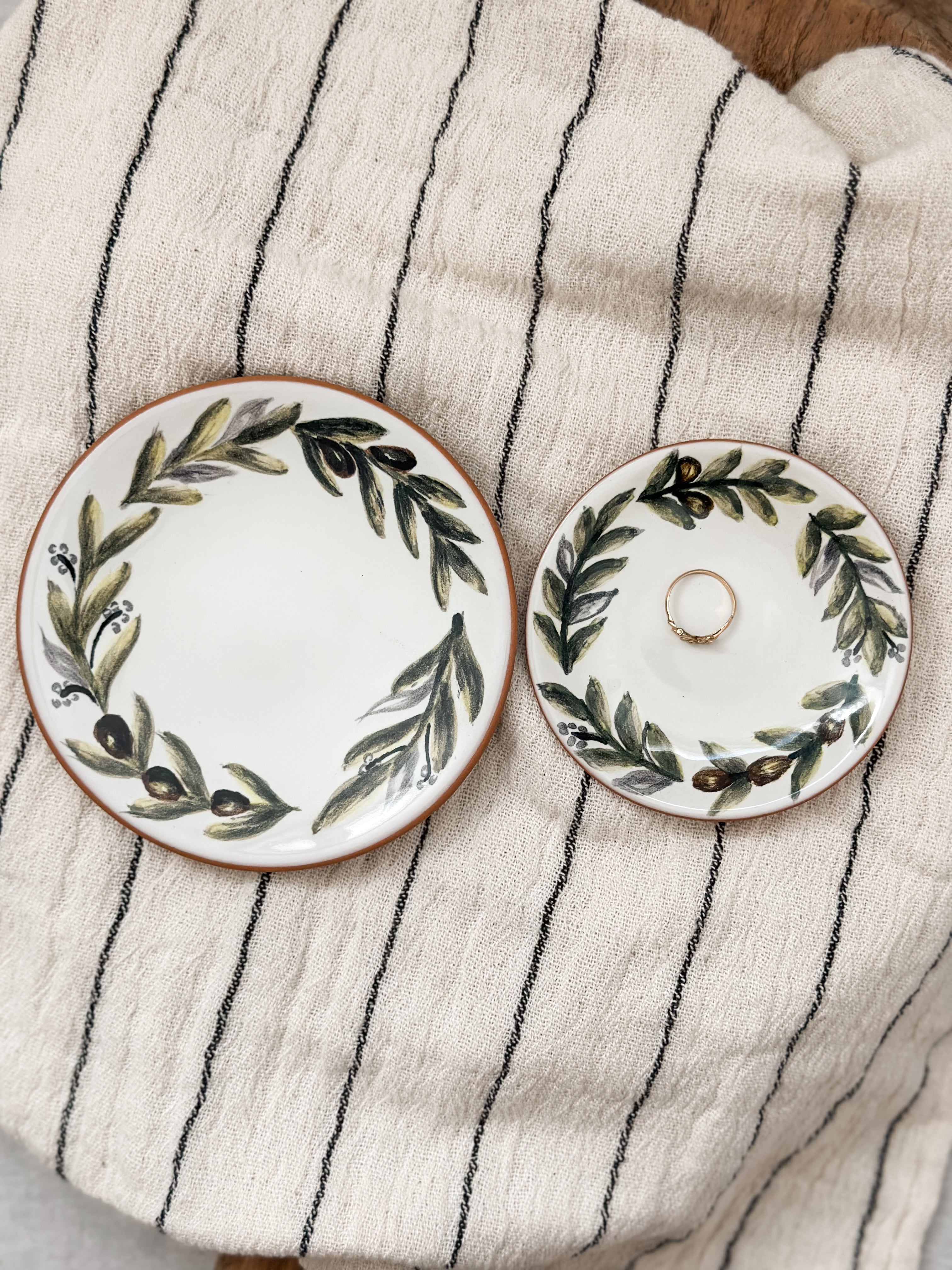 Plato de ceramica, con diseño de olivos, perfecto para tu mesa. Su medida es de 9 cm de diametro