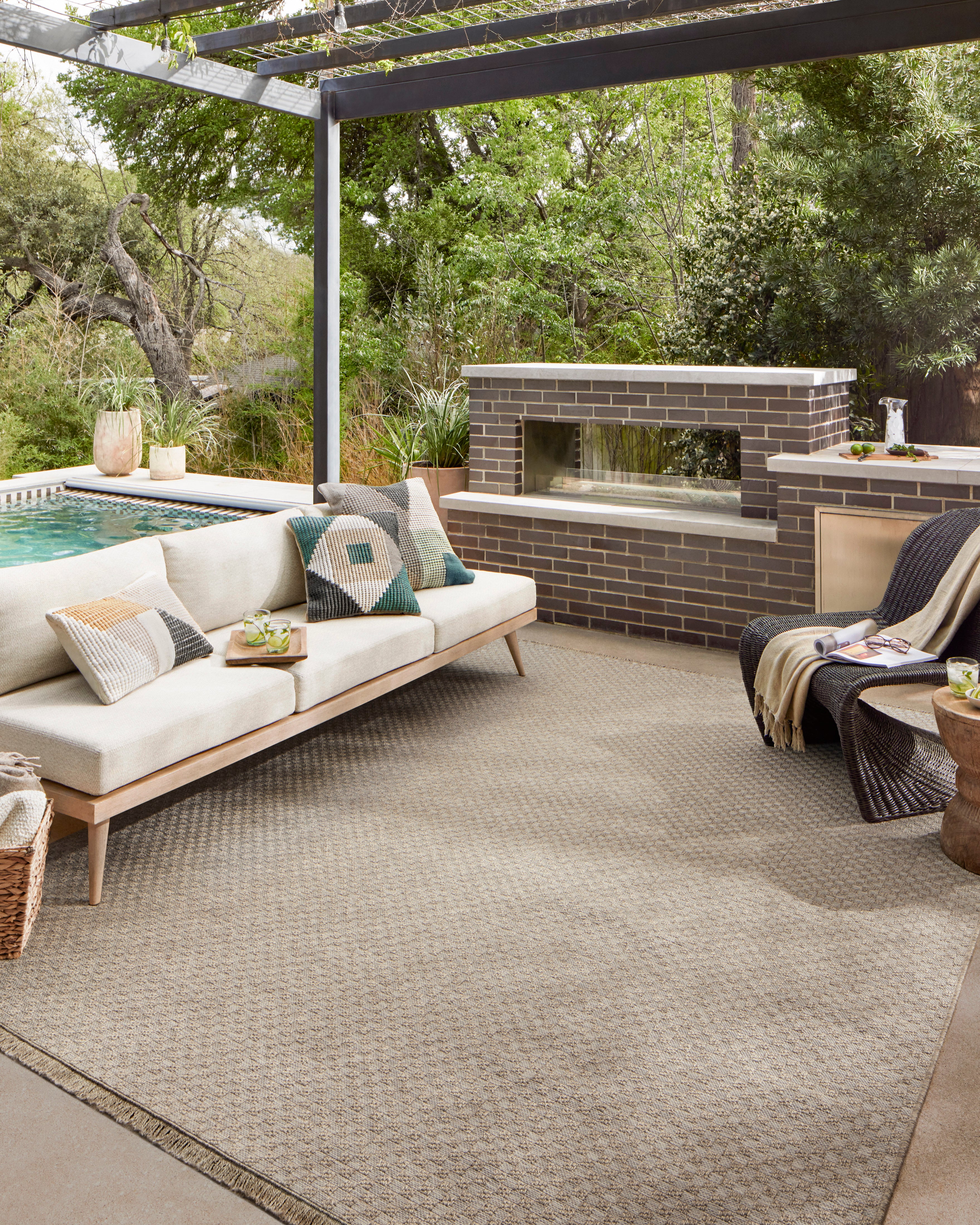 Creada para los días soleados, la Colección Dawn es una alfombra para interior y exterior con aspecto de sisal, pero tejida a máquina con 100 % polipropileno, lo que la hace resistente al agua y al moho (y también a la lluvia). Disponible con modernos estampados gráficos en tonos beige neutros, Dawn tiene un borde corto que le da un toque divertido y sofisticado a una alfombra que soporta mucho tránsito peatonal, ya sea en un patio o en un recibidor concurrido. Enjuague con una manguera cuando sea necesario.