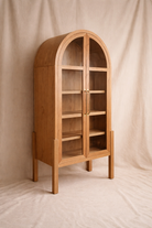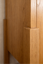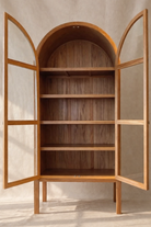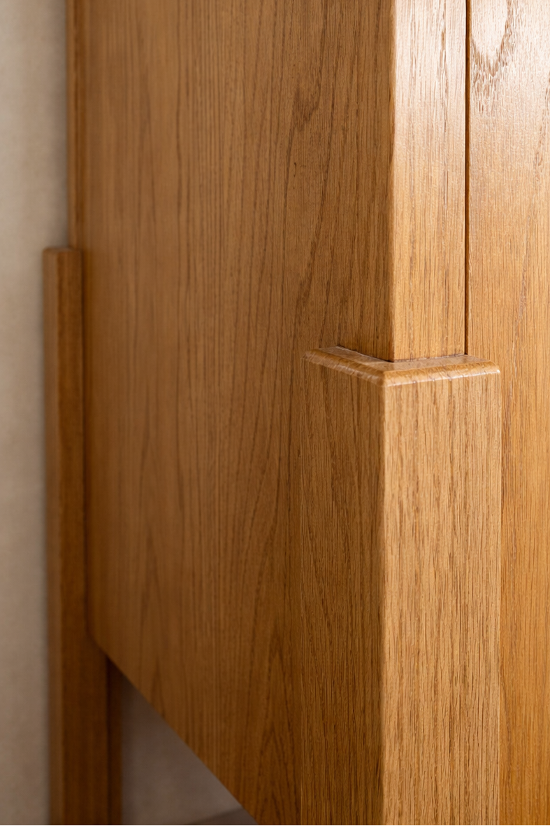 El Armario Majo de Casa Castañas es una pieza de carpintería artesanal elaborada en madera sólida de rosa morada con jaladeras de latón con acabado en bronce. Su diseño destaca por su remate superior curvo, que aporta suavidad visual y una presencia elegante dentro del espacio. Su estructura vertical y proporciones equilibradas permiten aprovechar la altura, mientras que las puertas con marco y entrepaños interiores generan una composición ordenada y funcional para almacenamiento y exhibición. La continuidad de la veta en toda la pieza refuerza su carácter natural y su lectura como un volumen sólido. Las jaladeras en latón aportan un contraste sutil con la madera, sumando un acento cálido que complementa el lenguaje del mueble. El conjunto se eleva sobre una base ligera que estiliza la pieza y facilita su integración en distintos espacios interiores. El Armario Majo se puede fabricar a medida según las necesidades del cliente, adaptándose a distintos espacios y configuraciones.