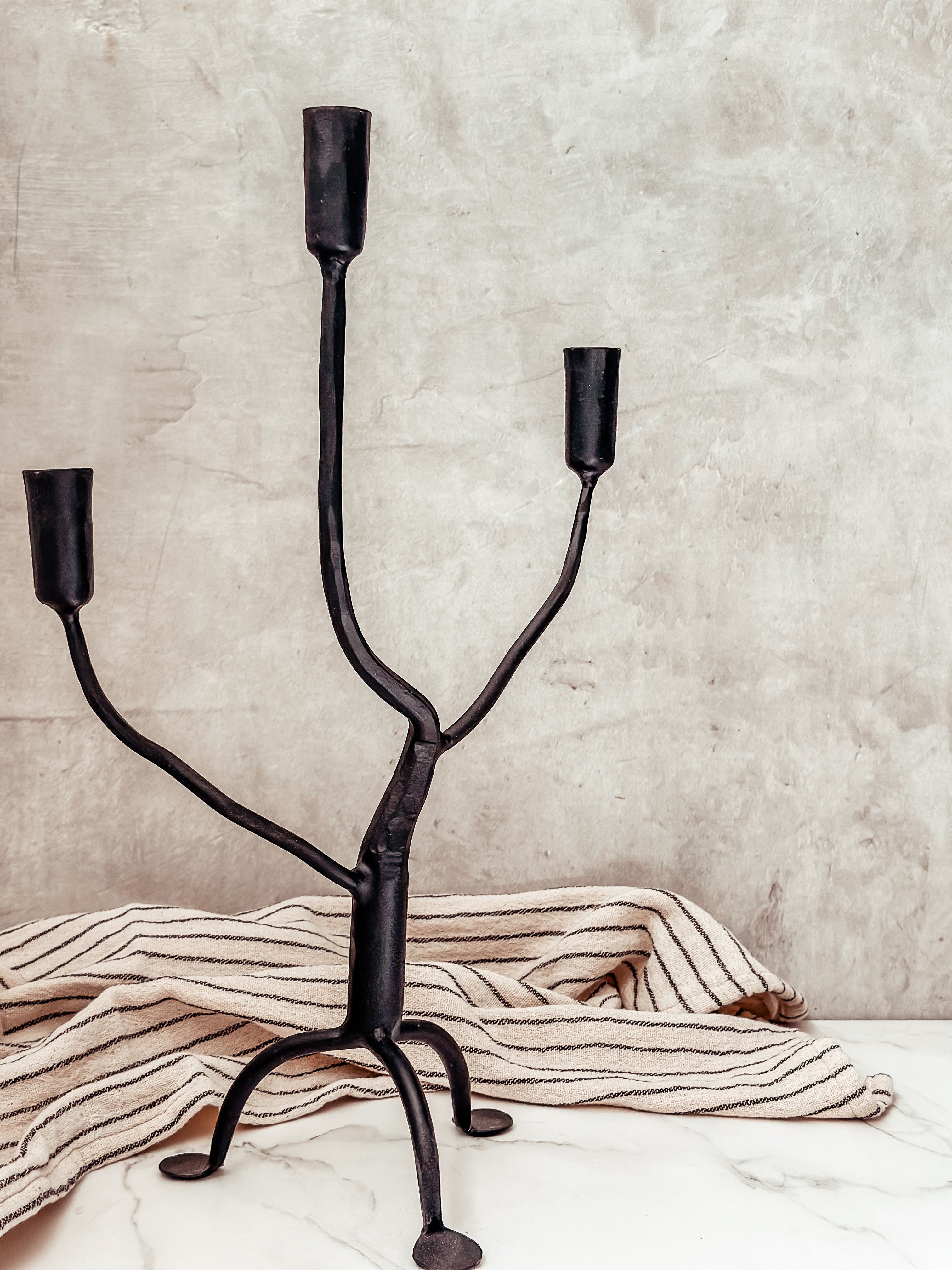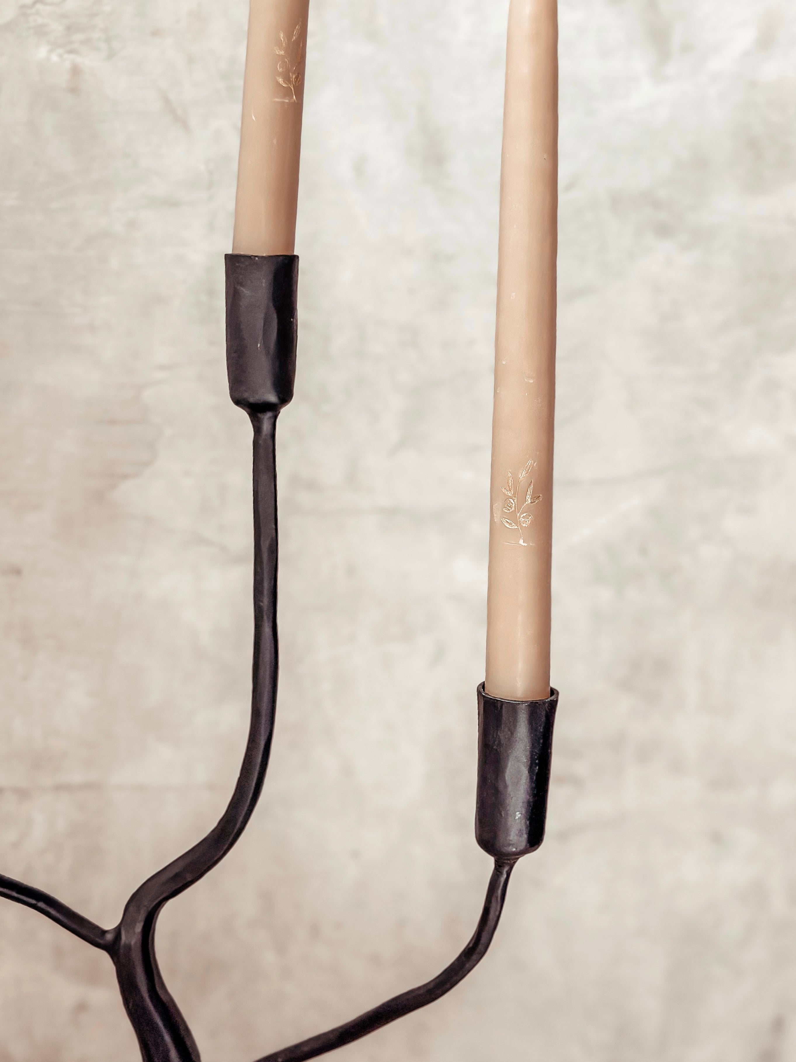Lindo Candelabro de Herrería ideal para tus velas de Inmersión, puedes ponerlo sobre algún mueble en tu sala o en tu mesa, perfecto para cualquier ocasión. Sus medias son 49 cm de Alto x 20 cm de Ancho.