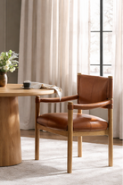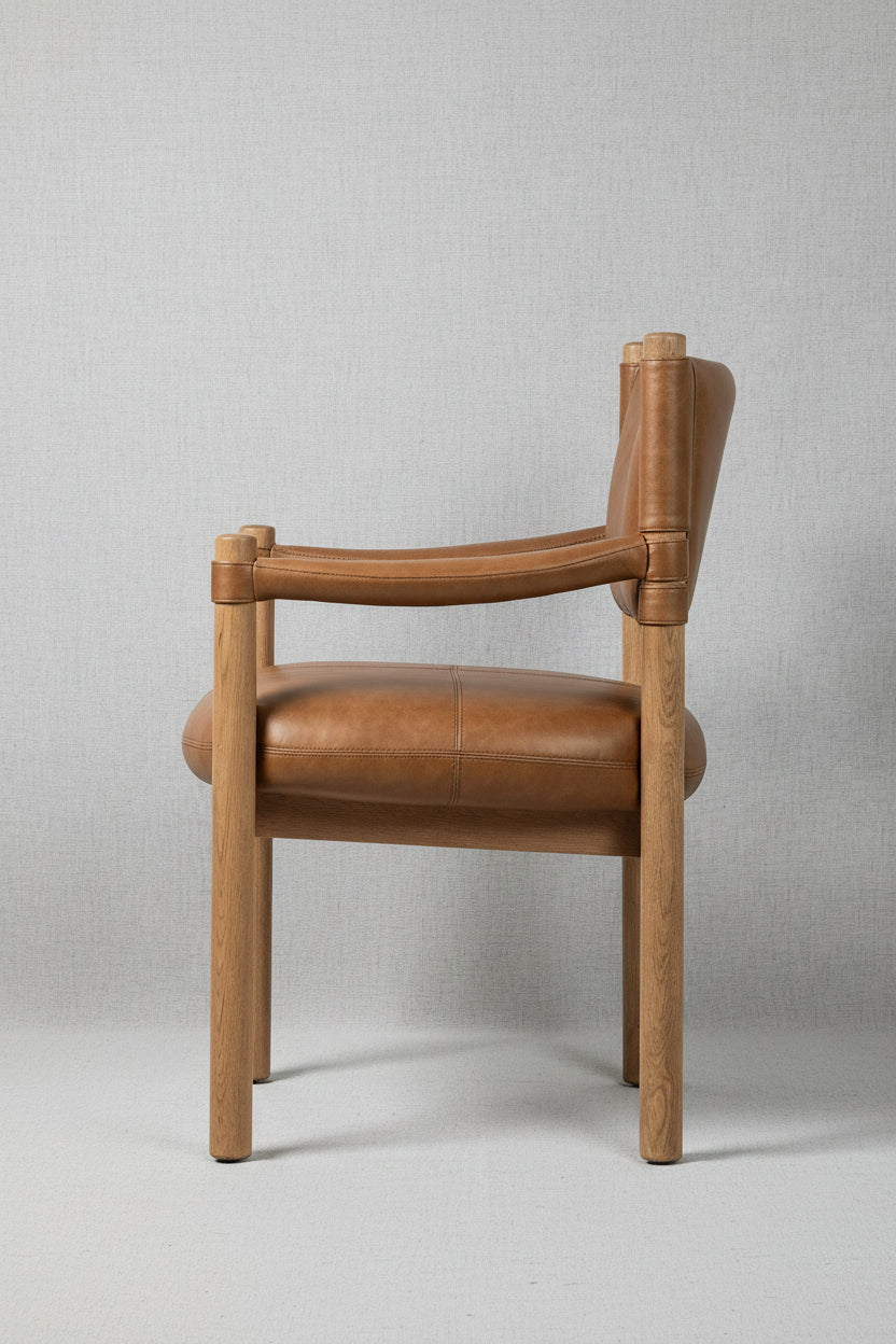 Transforma tu comedor con una silla de diseño nórdico minimalista que combina materiales de calidad. El asiento cuenta con un cómodo cojín tapizado en piel genuina  que proporciona confort excepcional, mientras que su estructura de roble natural aporta ligereza y elegancia. Una pieza versátil que equilibra sofisticación y funcionalidad para espacios modernos.
