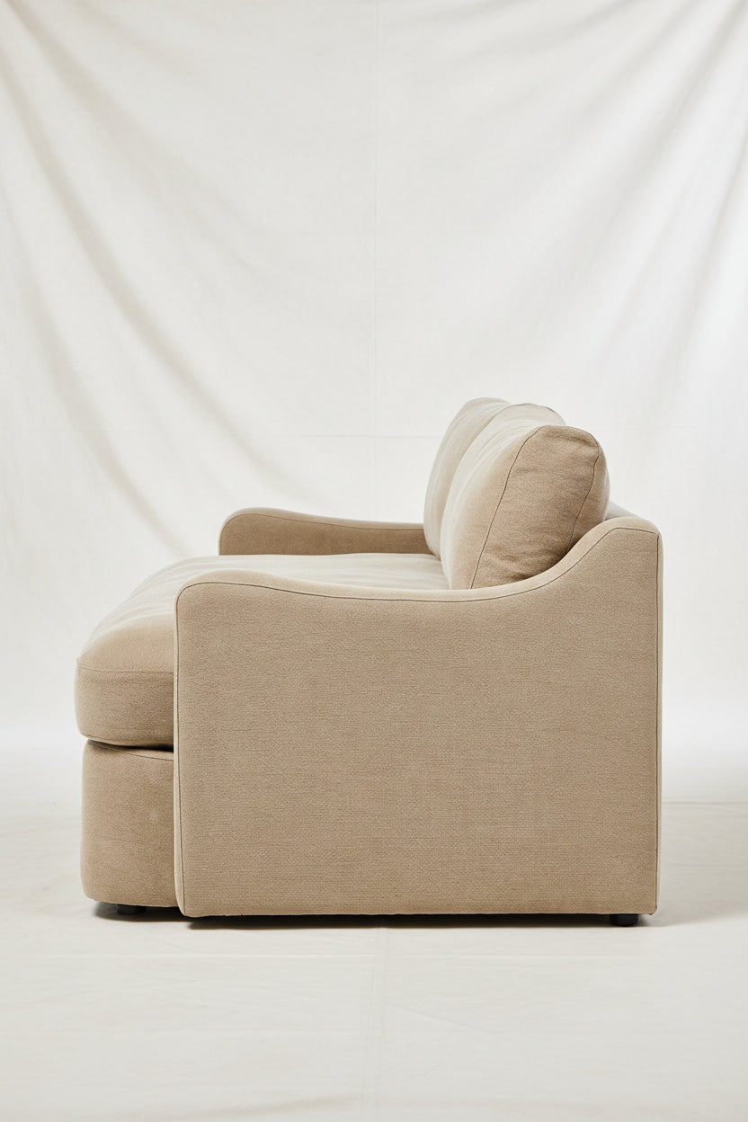 El asiento profundo y los cojines amplios están pensados para ofrecer una sensación cómoda y relajada. La configuración de dos cojines de respaldo y un cojín continuo de asiento permite un descanso más uniforme y una apariencia visual sencilla y equilibrada.