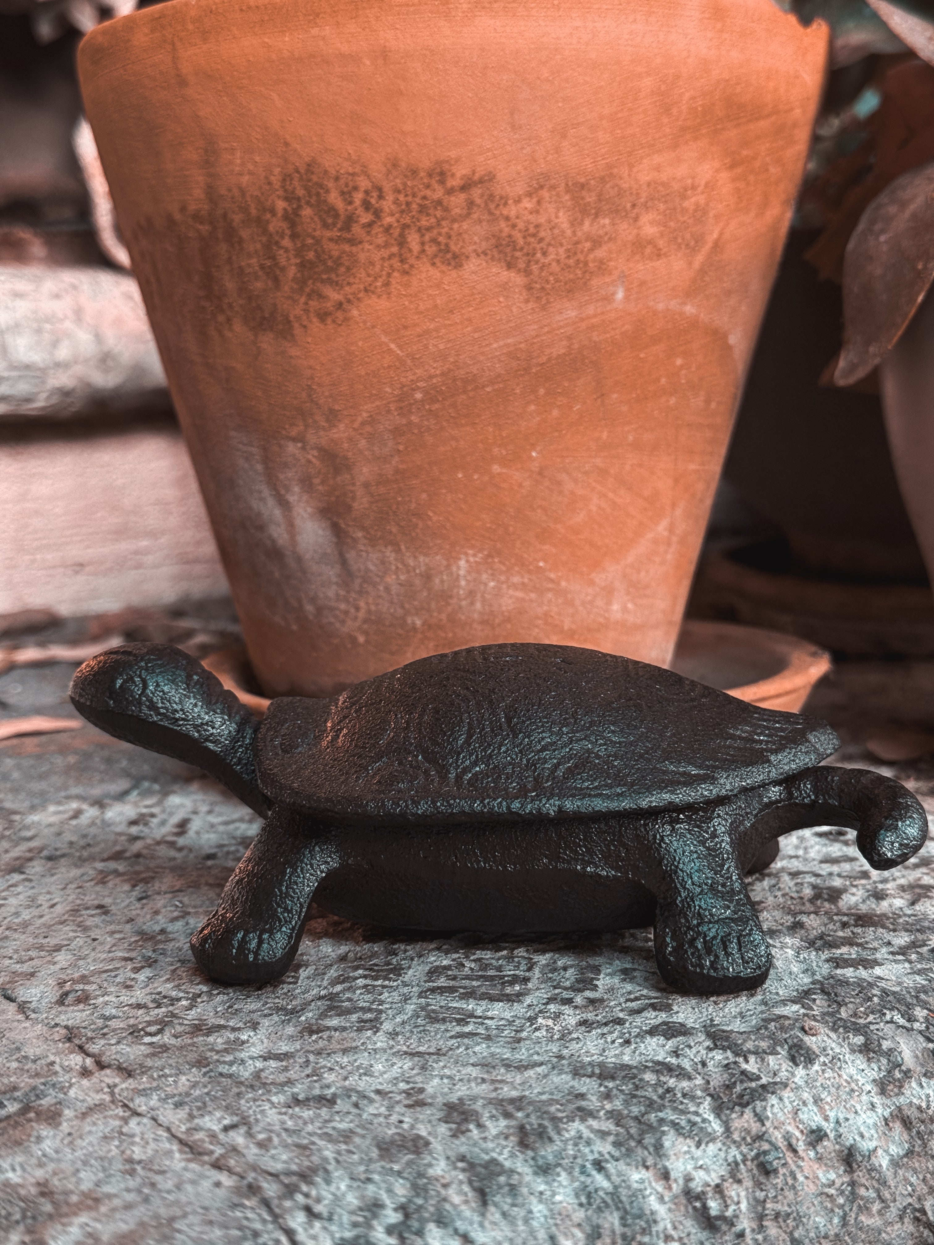 Caja de Herrería en forma de Tortuga. Perfecta para guardar llaves entre macetas afuera de tu casa.